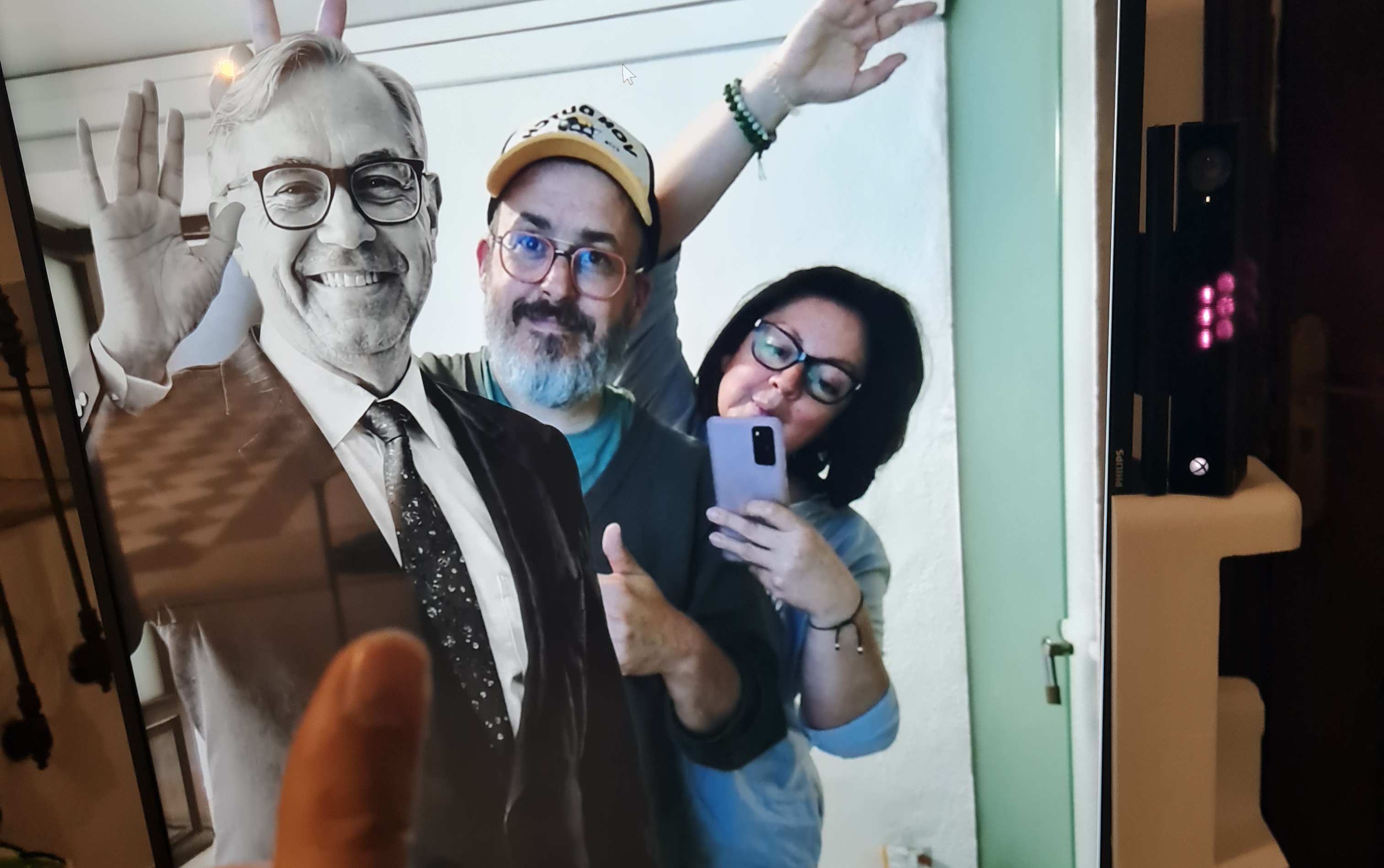 En esta experiencia Phygital, hemos hecho una recreación interactiva del autor mediante IA, que guía al visitante y posa con él para tomarse un selfie.